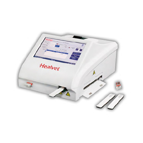 Dispositivo de diagnóstico veterinario fácil de usar, con tecnología de inmunofluorescencia.
